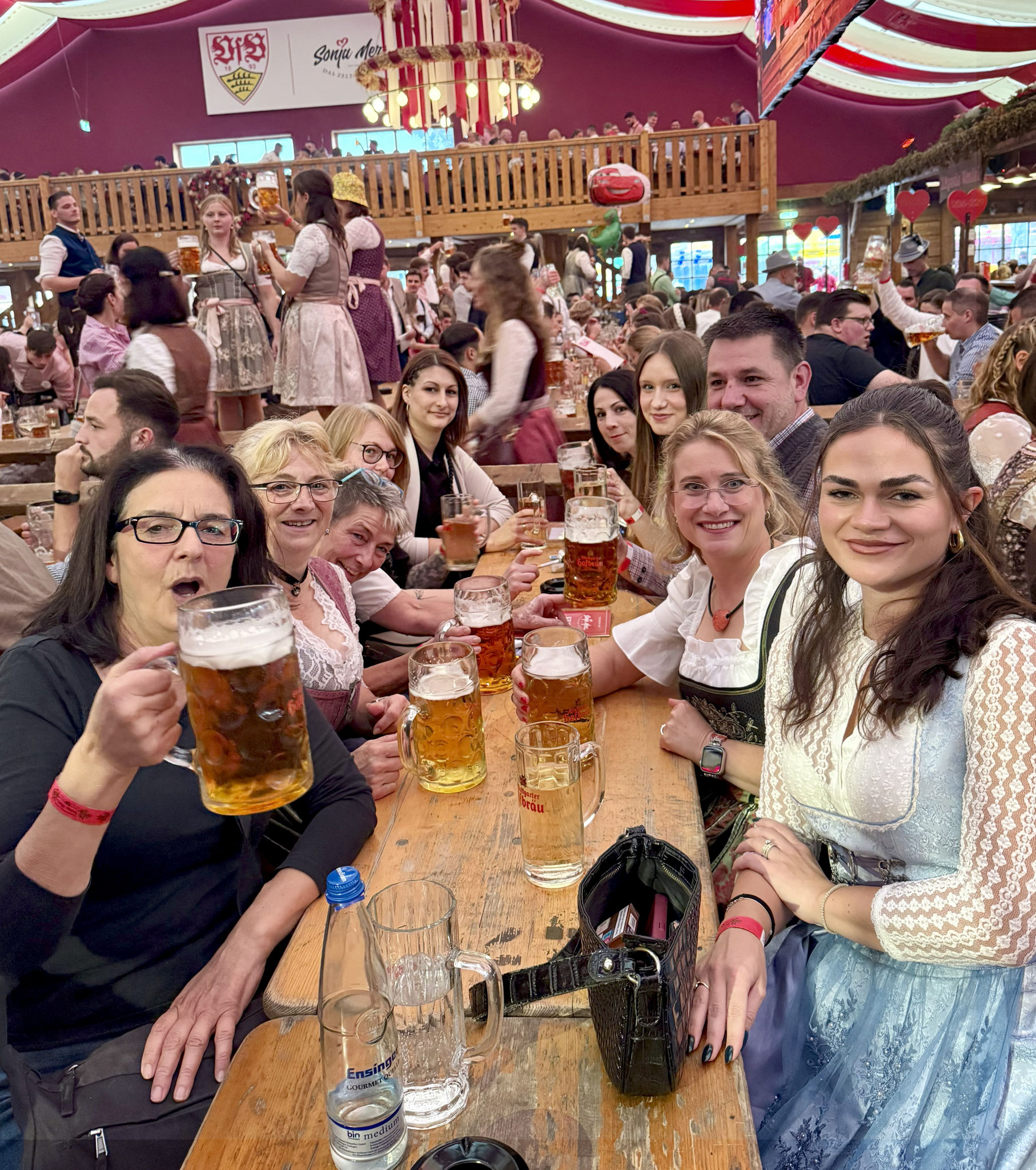 Das Schönste daran: Wir sind eine bunte Truppe von jung bis „alt“ – und gemeinsam macht’s einfach am meisten Spaß. Wenn wir zusammen auf der Bank stehen, Arm in Arm schunkeln und lautstark die Lieder mitsingen, dann spürt man die echte Wasen-Stimmung.